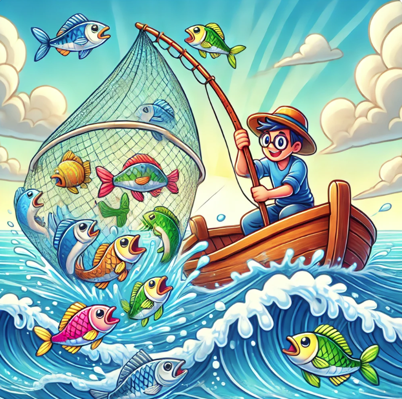 작은물고기는 소소한 행운과 작은성취를 의미. 여러마리를 잡았다면 많은기회나 많은 성과를 얻을 가능성이 큼